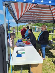 We handed out New Testaments, Gospel Frisbees, Sports Bottles, candy, and cold water to our neighbors. While they gave out 2,000 backpacks with school supplies, we gave out 700 bottles of cold water in Jesus’ name. We were the only church presence there, and our stuff was free!!